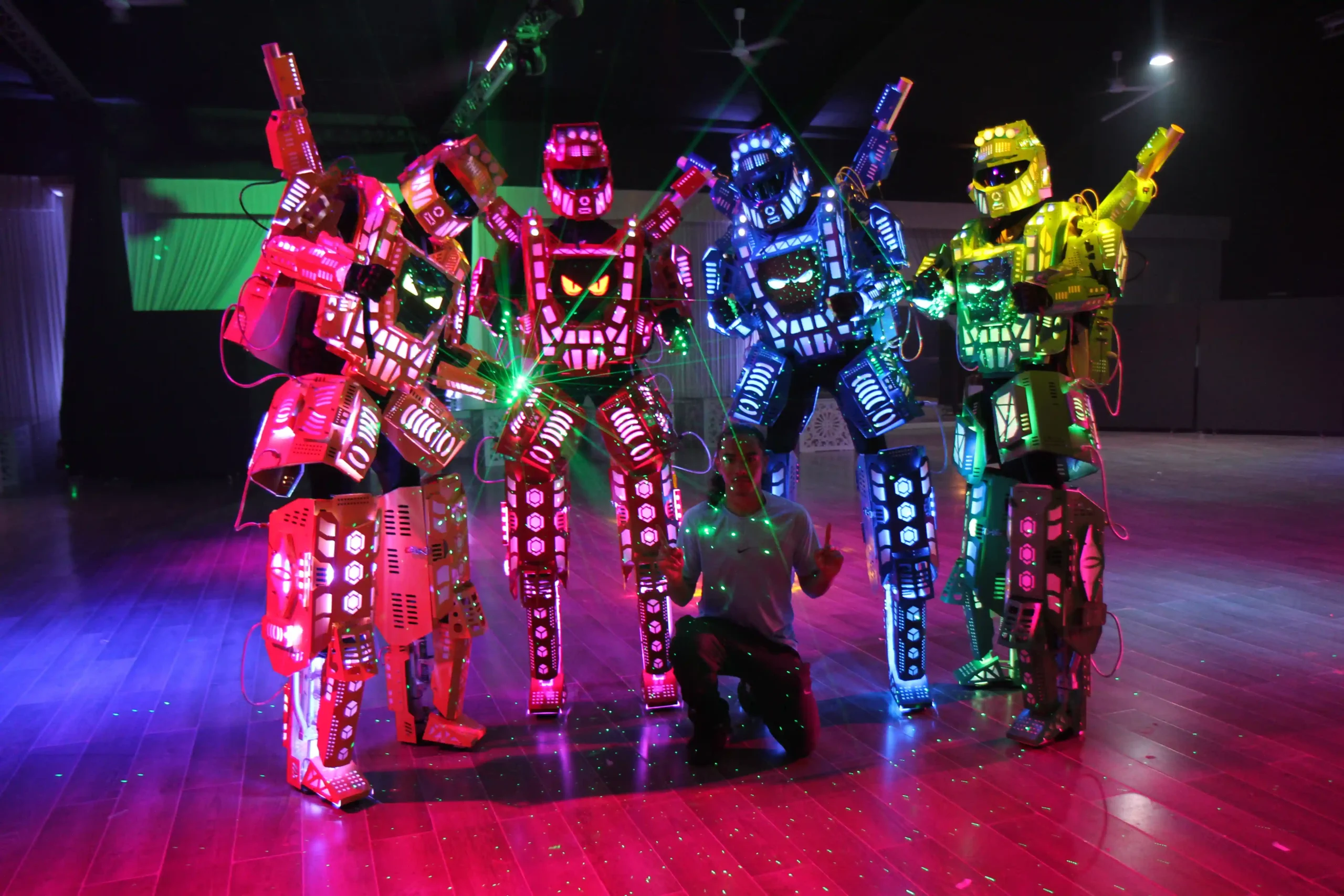 Activité phare de Skybots : l’animation et la gestion de 4 robots LED géants, uniques en France.